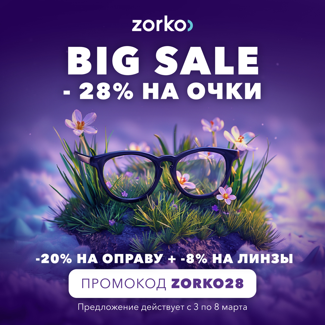 Дорогие друзья! Zorko – сеть офтальмологических центров в Киеве – дарит вам уникальную скидку 28% на заказ очков!